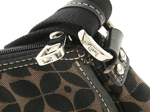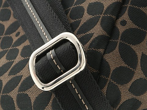 Fait de tissu de jacquard de signature avec garniture en cuir.
